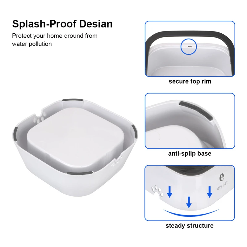 Waterproof and easy to clean: The dual design of a waterproof frame and floating plate effectively prevents overflow. Pet drinking fountains keep the floor clean and tidy. The pet water basin is easy to disassemble and assemble, suitable for weekly cleaning, and absolutely clean, to ensure the health of the pet