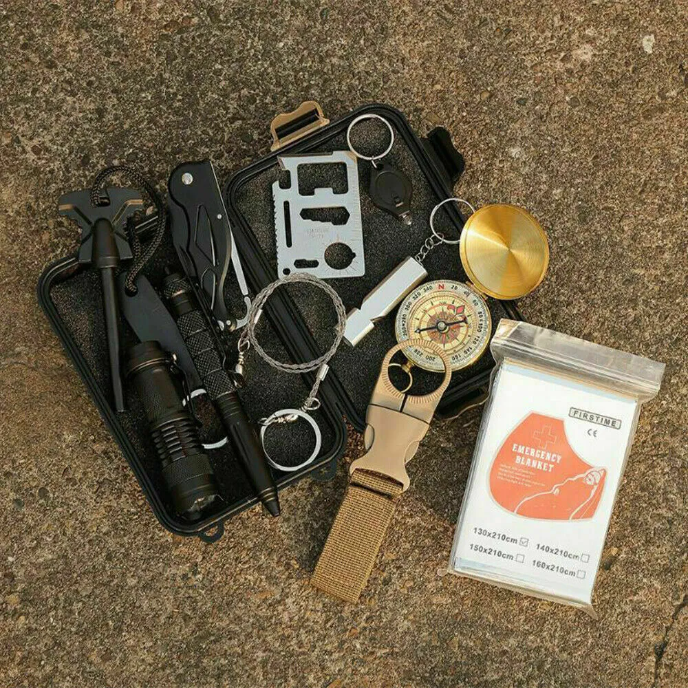 This outdoor survival kit is equipped with 13 practical tools with multi-function.
