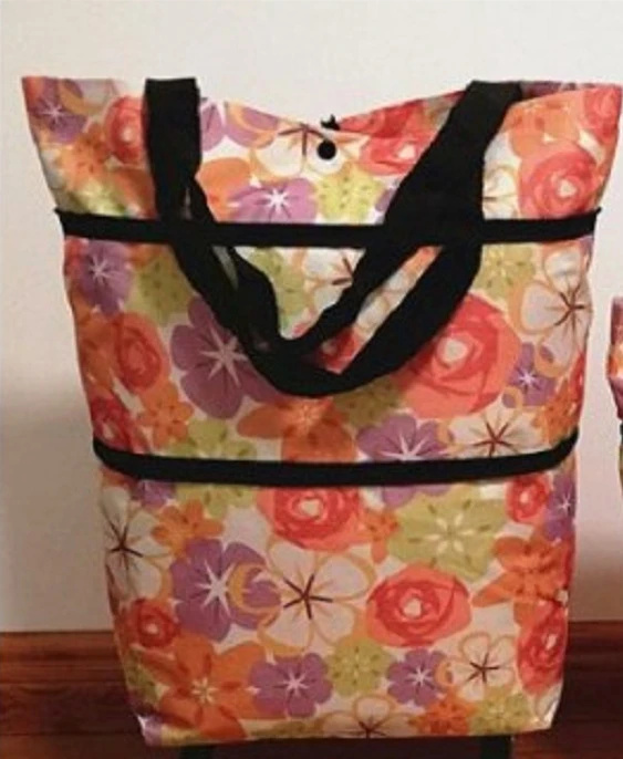 Sac de Shopping avec roulettes pliable assez grand, facile à utiliser.