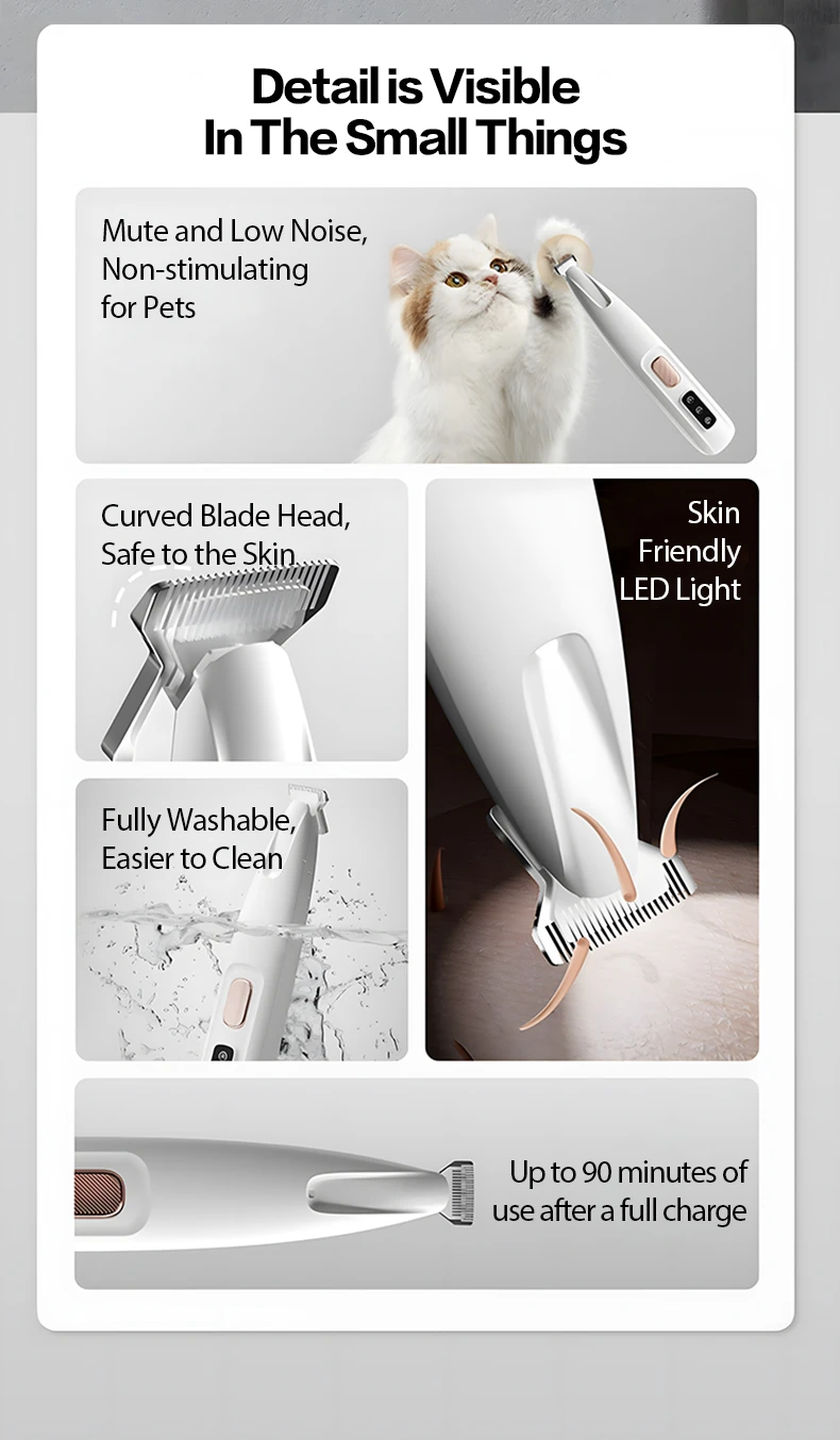 2025 New Pet Paw Trimmer 1Pack,Rechargeable Quiet Hair Trimmer For Pets,Professional Pet Grooming Kit - Cordless Waterproof Clippers With LED For Precision Trimming,Ideal For Home Grooming Pet Hair