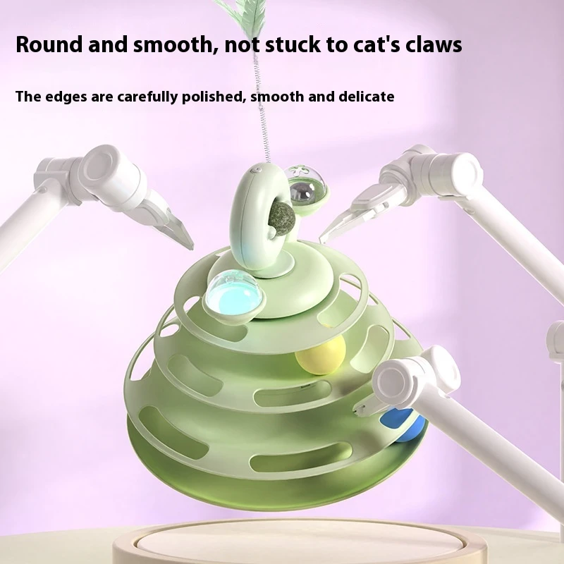 Four Layers Turntable Cat Toy: Multi-Layer Shaped Hollow Track, The Edge Of The Track Is Polished, Smooth And Delicate, And Will Not Hurt The Claws. Train Your Cat Natural Instincts For Hours Or All Fun.