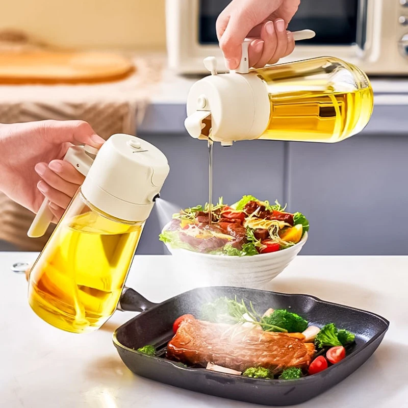 470ML Olive Oil Sprayer Dispenser For Cooking BBQ 2 In 1 Glass Oil Vinegar Soy Sauce Spray Kitchen Oil Bottle For Air Fryer