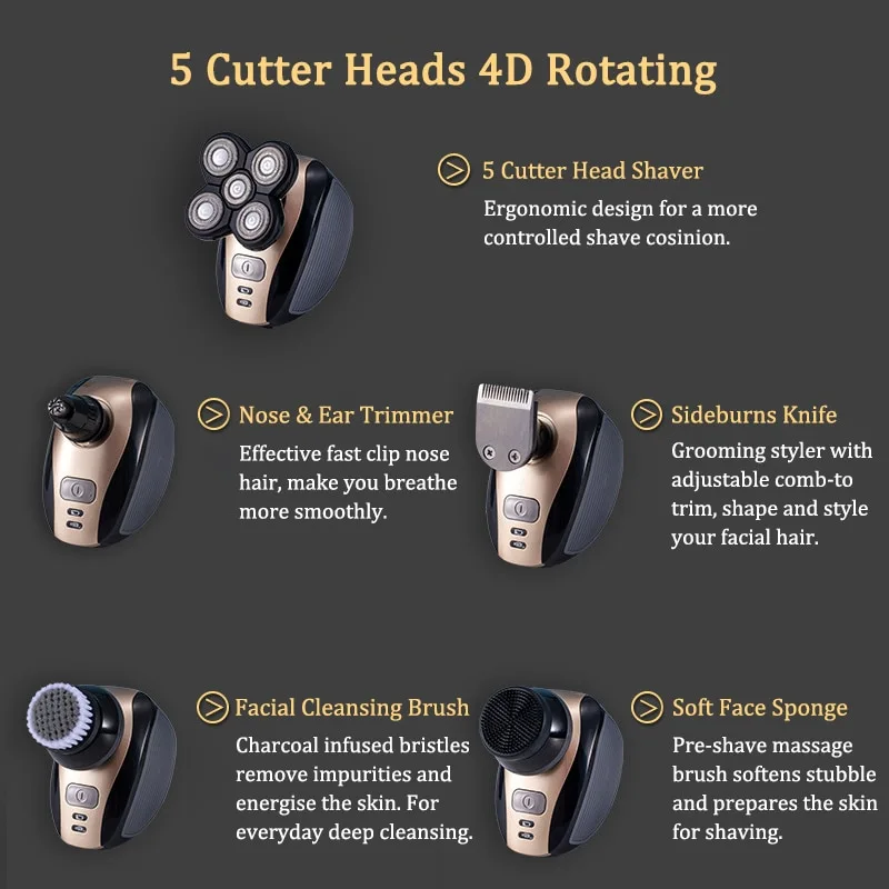 This trimmer is a 5-in-1 multifunctional electric shaver.