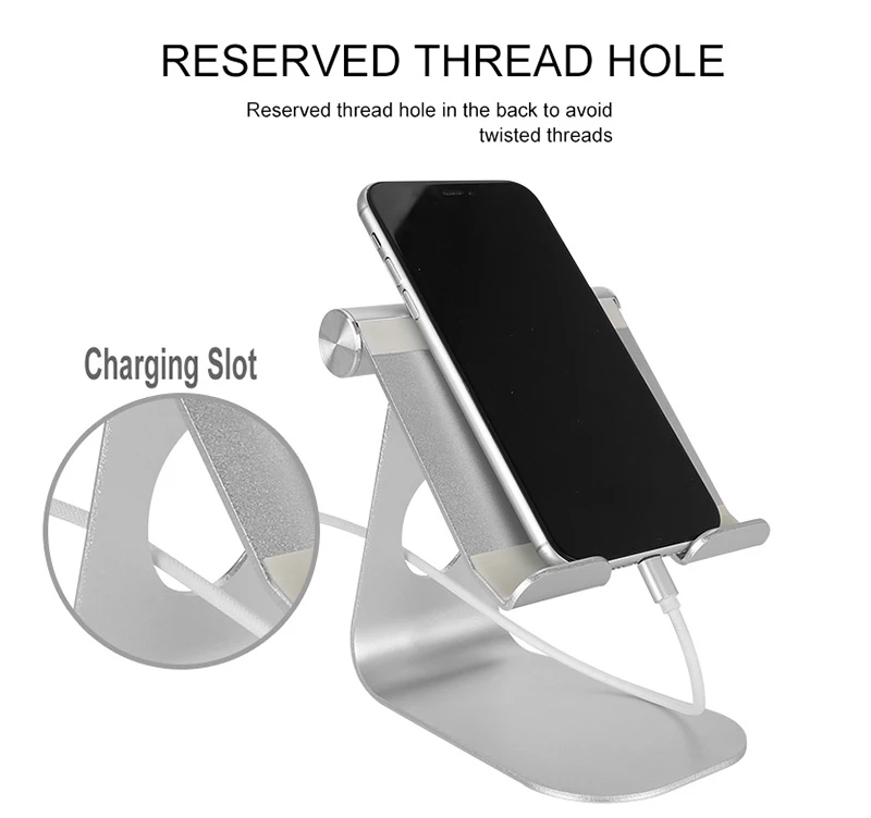 Designed on a low center of gravity makes it stable. Extended hooks keep the phone in safety, and rubber cushions protect the phone from scratches and sliding.