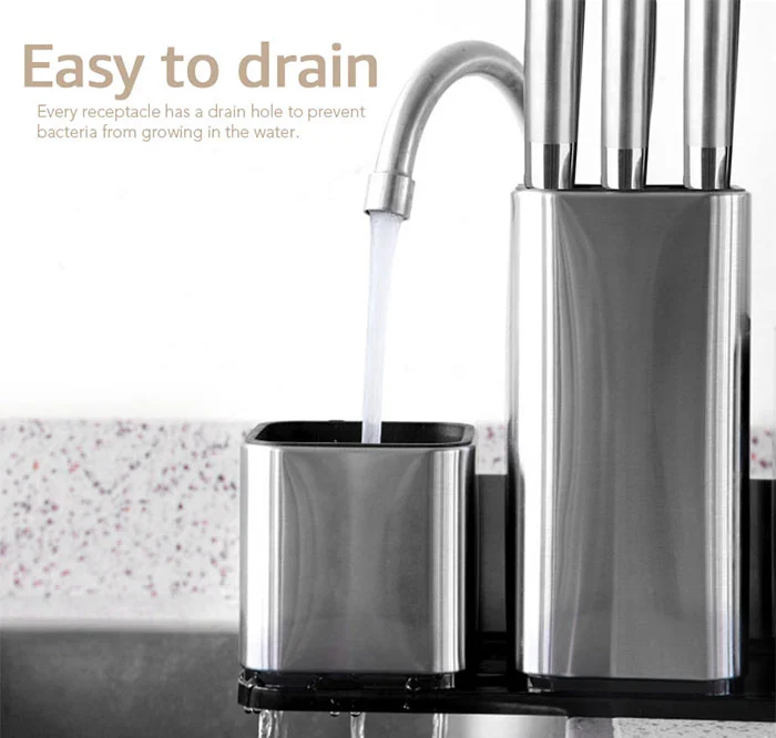 The multifunctional storage rack can be used to place knives and cutlery, which effectively prevents the knife and cutlery from rusting.