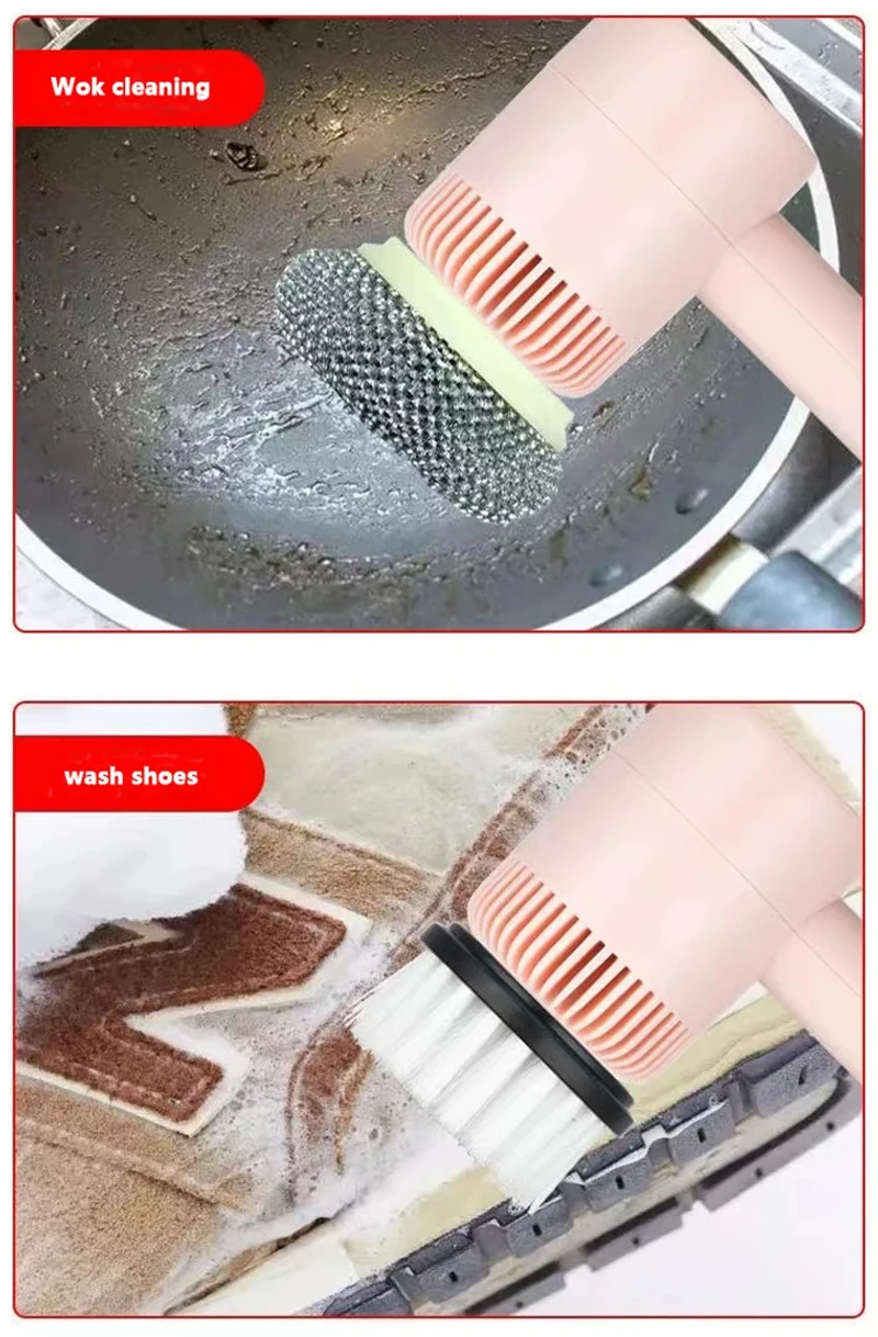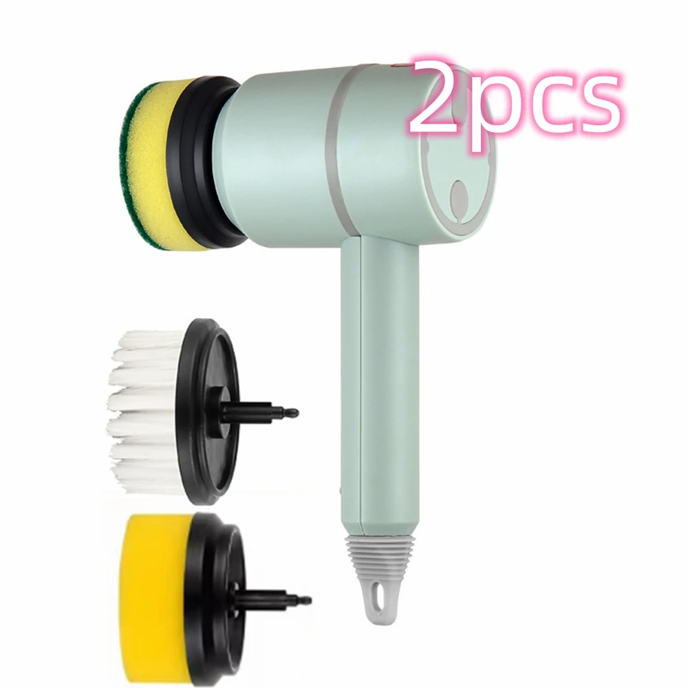 Color: [double brush head] [high power 1200mA] [rechargeable] third gear pink, [double brush head] [high power 1200mA] third gear green, [double brush head] [high power 1200mA] third gear white, [three-headed brush] scouring pad brush+brush+sponge brush