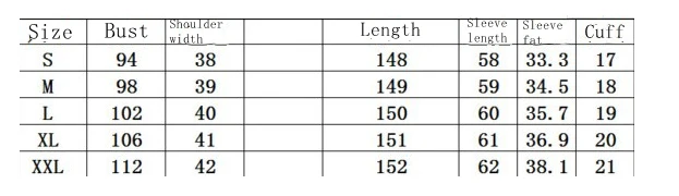 Size: S/M/L/XL/XXL/3XL unit:cm