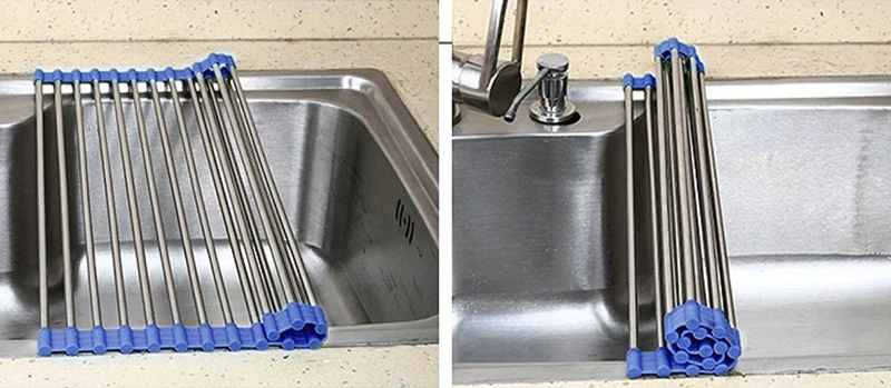 Folding Kitchen Drain Sink Rack Stainless Steel