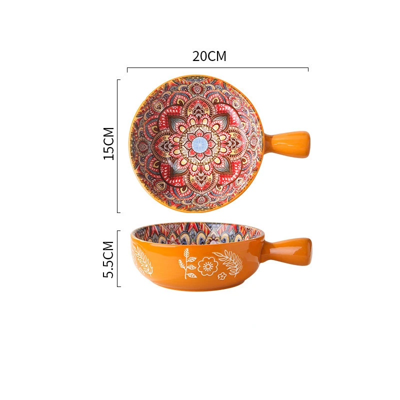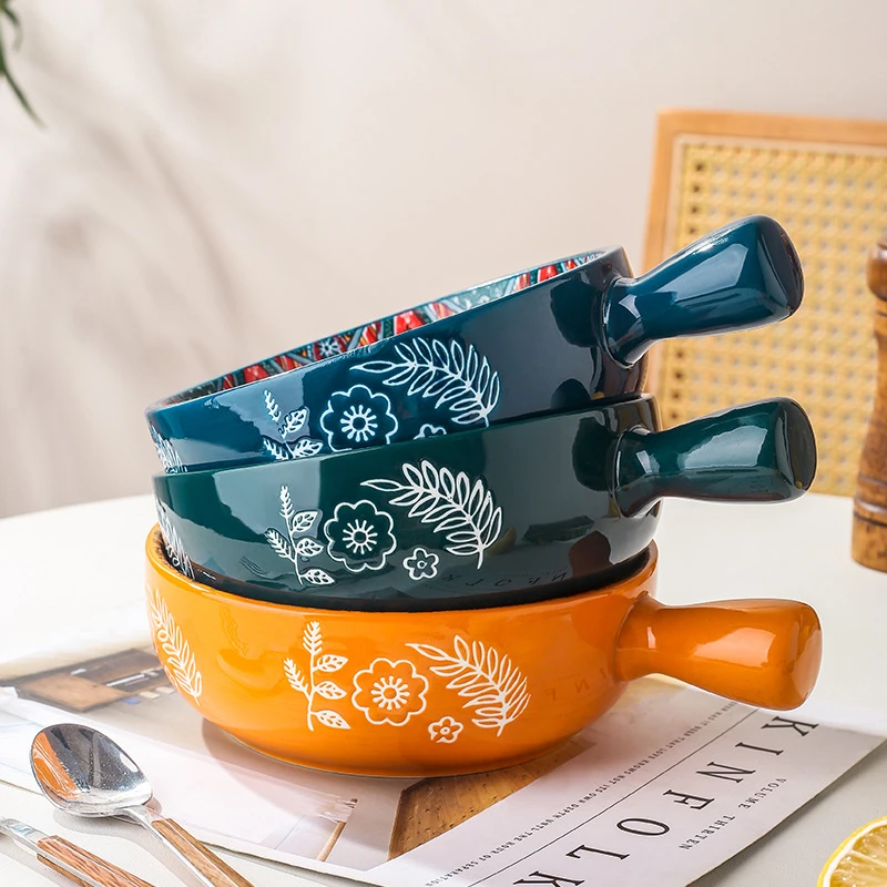 Color: red glazed flower handle bowl, blue glazed flower handle bowl, green glazed flower handle bowl