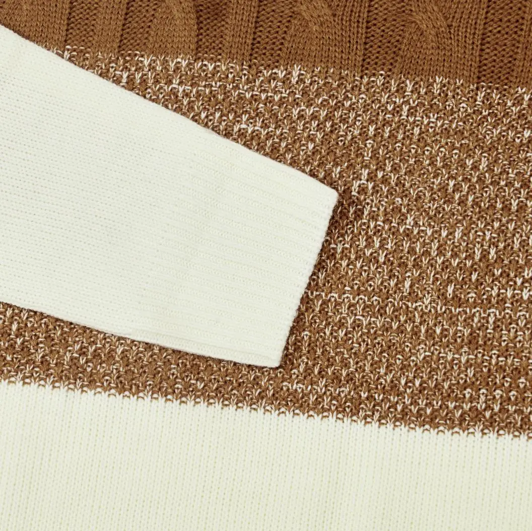 - Colorblock, crew neck, long sleeve, pullover sweater