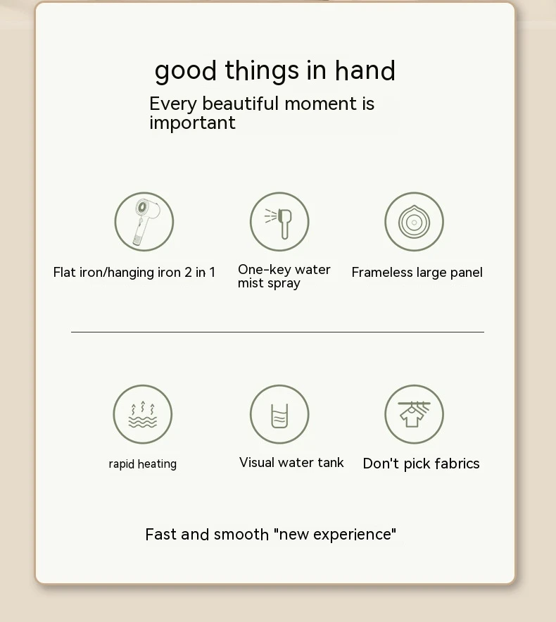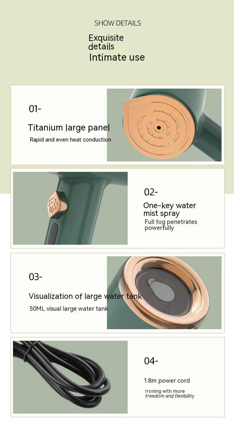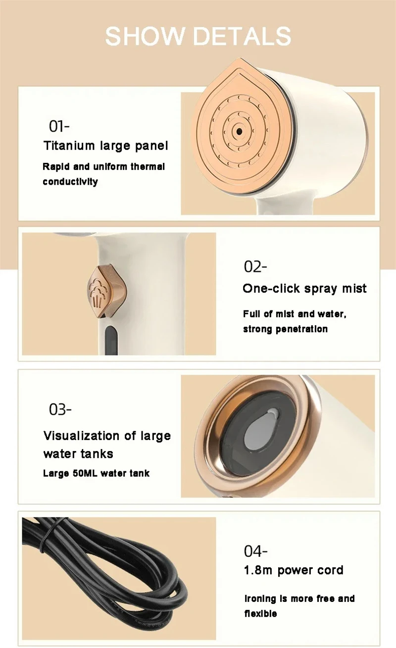【Features】: Steam iron, titanium panel, effectively slows down high-temperature damage, irons clothes smoothly and without deformation, has a fine mist, and quickly irons wrinkles on clothes, simple and practical.