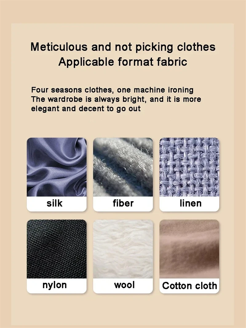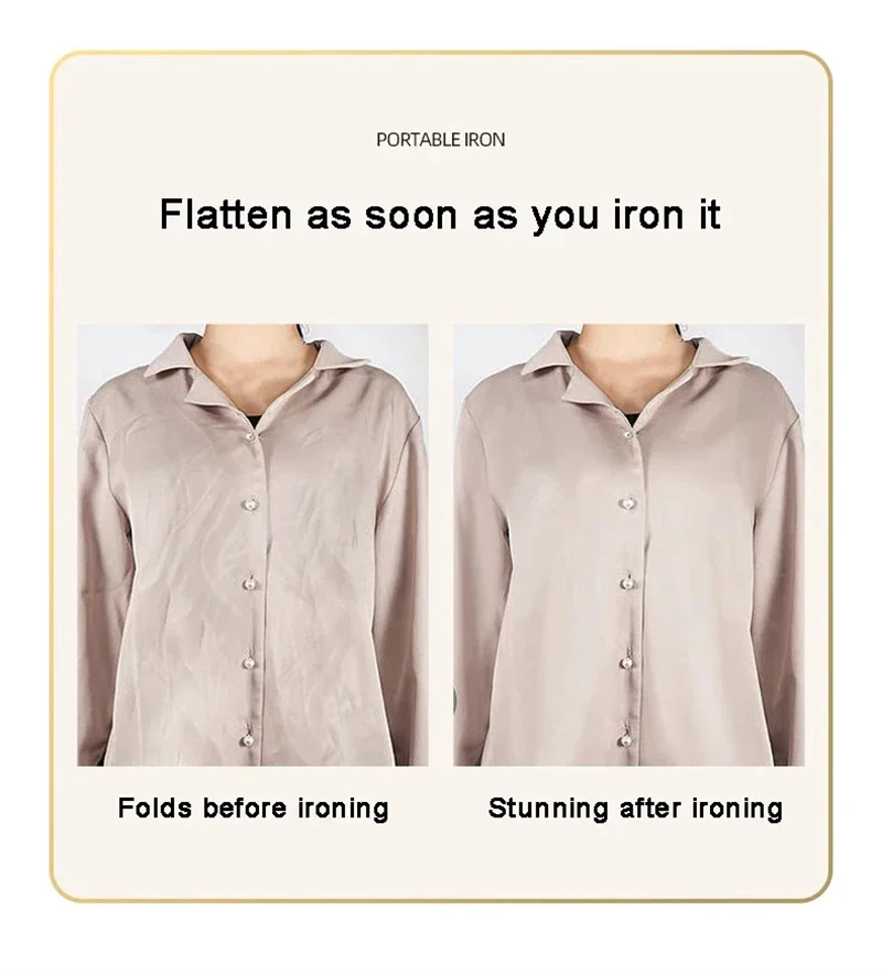【Multifunctional】: A portable mini ironing machine is suitable for clothes of all fabrics, such as silk skirts, shirts, suits, pants, children's clothes, short sleeves, etc.