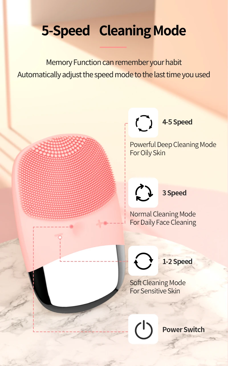 * IPX7 Waterproof design, the Face Cleaner is safe to use.