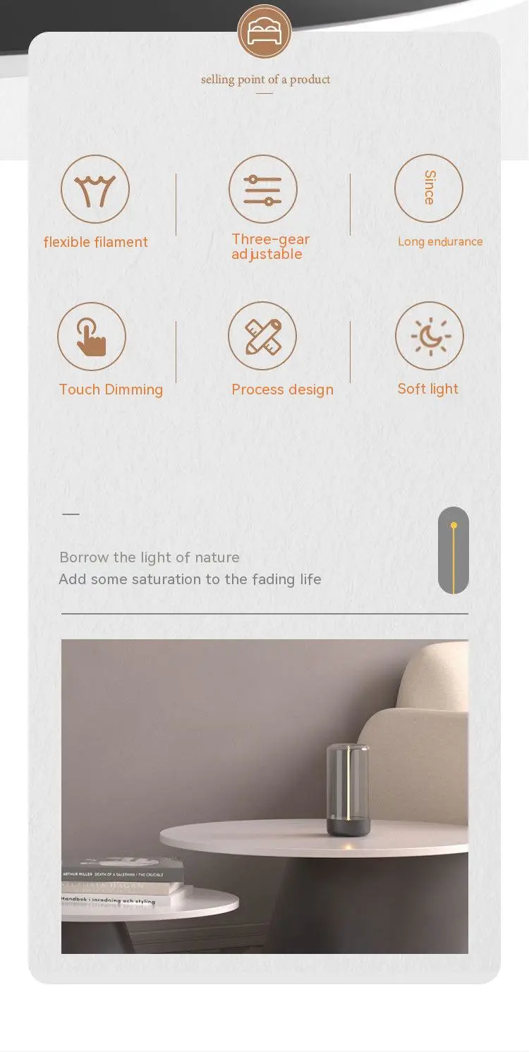 1. Two modes can be adjusted according to the heart+(normal breathing state with built-in constant light mode and breathing mode), and different modes can be switched through touch buttons.