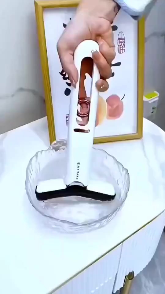 First, install the cotton head and soak it in water. The mini mop is equipped with a wringer, which can be folded in half with a hand at 180° to squeeze out the water, and the washing and dehydration are integrated