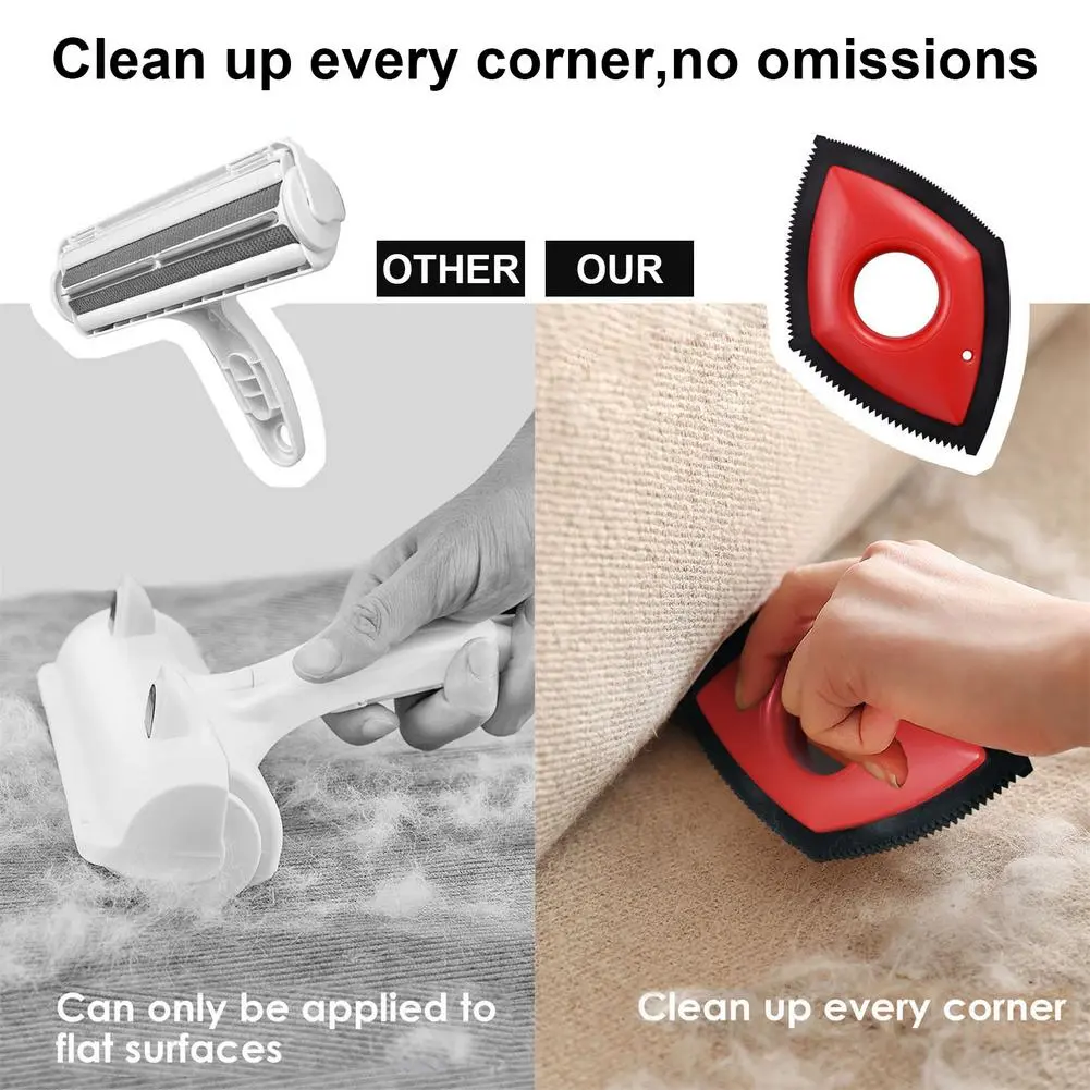 5. Wide Application: The long side, curved side and four inclined surfaces of the hair remover correspond to the cleaning of the flat surface, the curved surface and the corner respectively. It is very suitable for cleaning cars, carpets, sofas, quilts, clothes, etc.