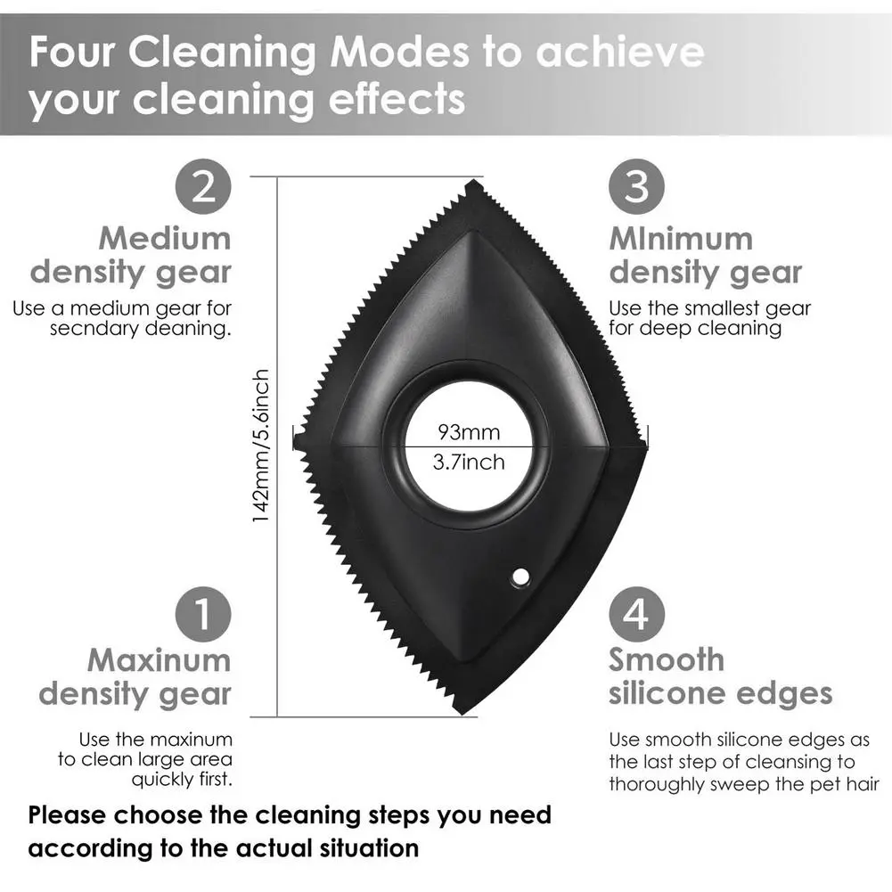 1. Four Cleaning Modes: This hair remover has 4 modes with different densities. You can switch the mode according to the number and length of pet hair to achieve the best cleaning effect.