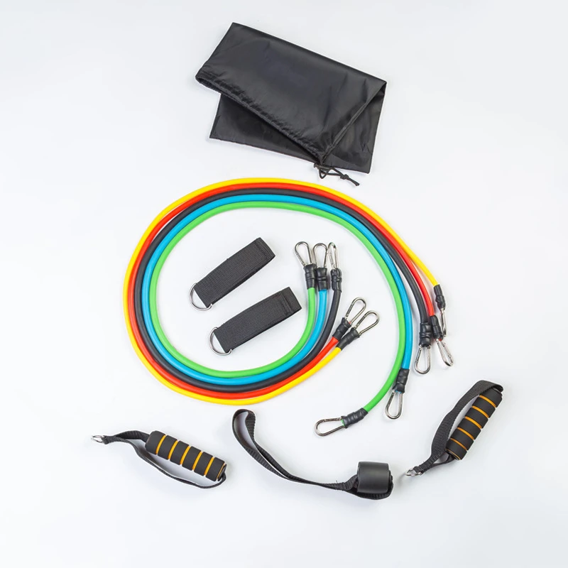 5 * elastic bands: black (30 lbs), blue (25 lbs), red (20 lbs), green (15 lbs), yellow (10 lbs)