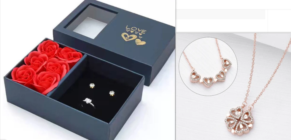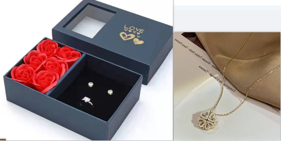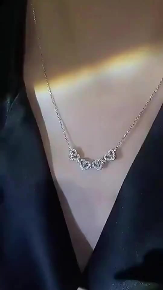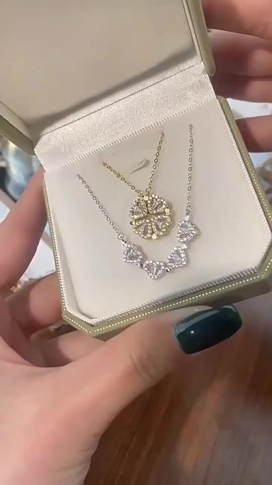 Retro magnetic folding heart shaped four leaf clover necklace, 4-in-1 design, multi wearing models, the first model is that four hearts are combined into a four-leaf clover necklace, and the other is four hearts spread out lined into a 4 love-shape necklace.