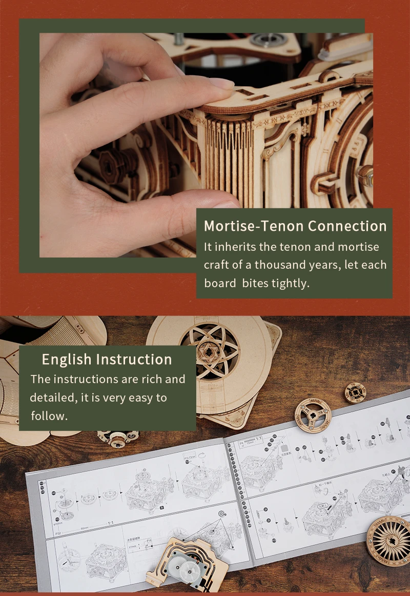 Robotime ROKR DIY Hand Crank Classic Gramophone Wooden Puzzle Model Building Kits Assembly Toy Gift for Children LKB01