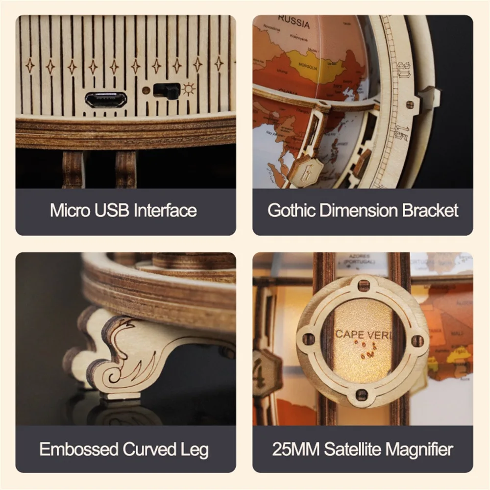 It is not only a rotatable globe, but also a unique home decoration, full of classical art. It can be placed on the bedside or study room as a lamp, USB powered.