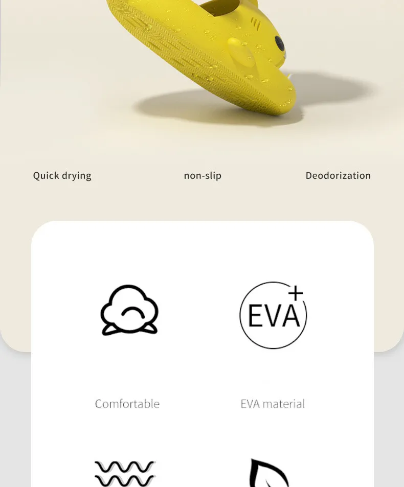 EVA MATERIAL QUICK-DRYING: Carefully Selected Eva Shoe Material to Make a Perfect shark slides Like This. Lightweight, Durable, Soft Enough to Give Your Extraordinary Experience. Our shark slides elastic good, and feel very soft.