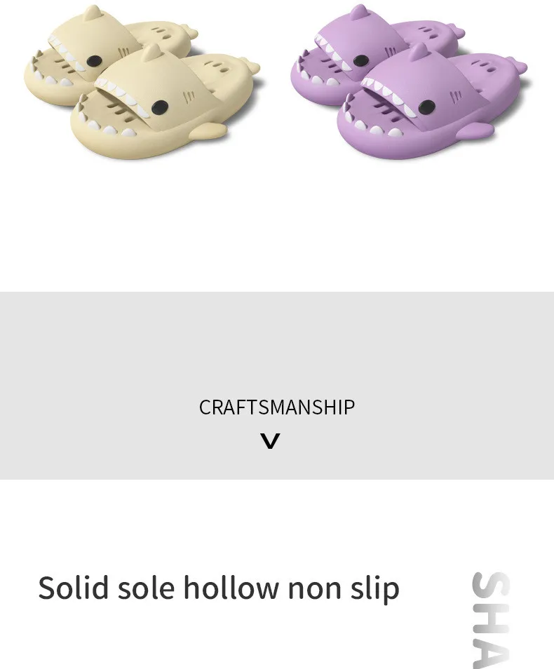 SOFT AND COMFORTABLE: Shark slides adopt a cute pattern design, unique open toe design, let the shark's mouth open and close when you walk, novel and interesting. Designed with a concave sole that protects your toes from kicking off table legs or door sills.