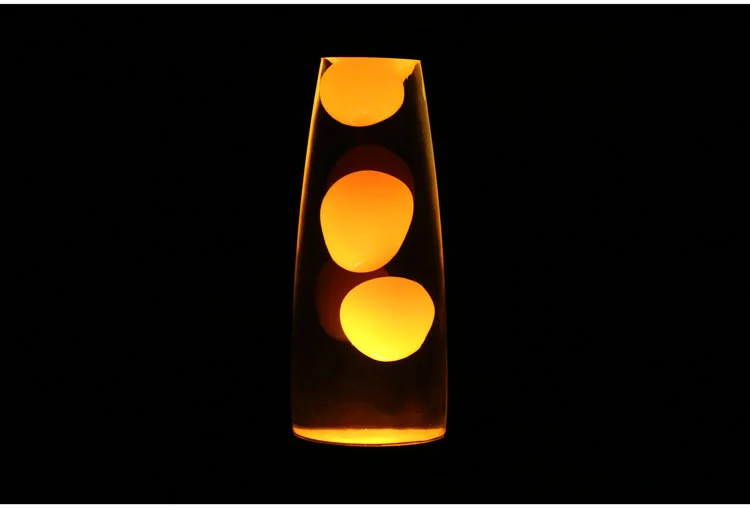The lava lamp uses the heat generated by the bulb inside the base to melt the wax in the glass bottle, forming a wax ball that runs up and down. The melting time is related to the outside temperature.