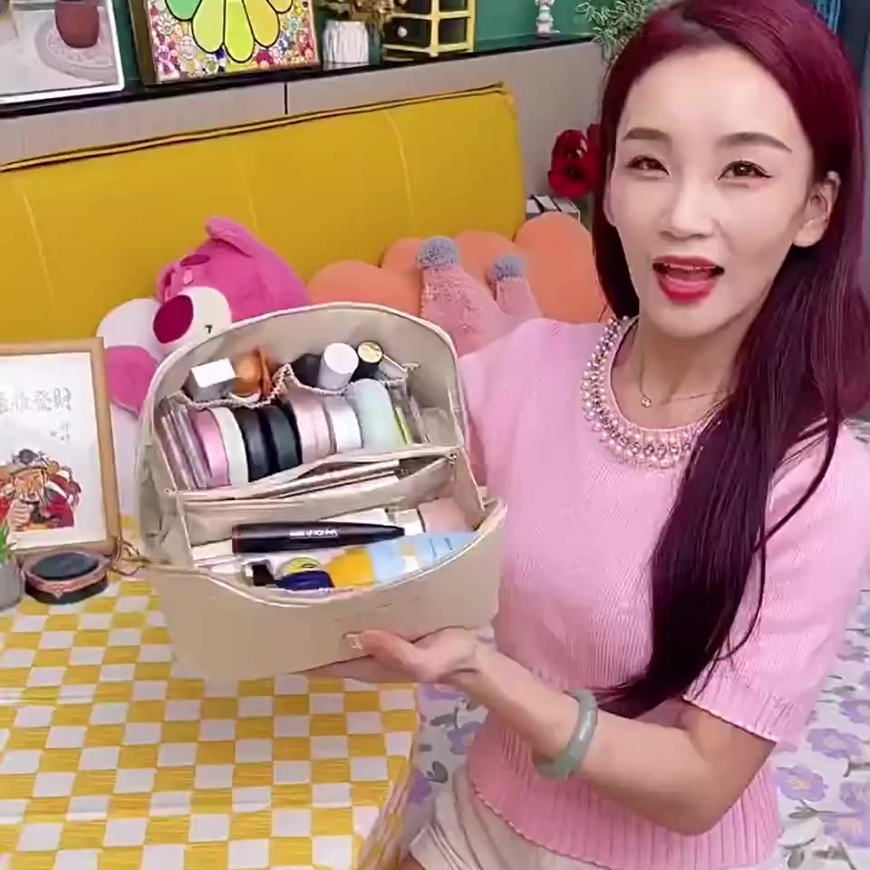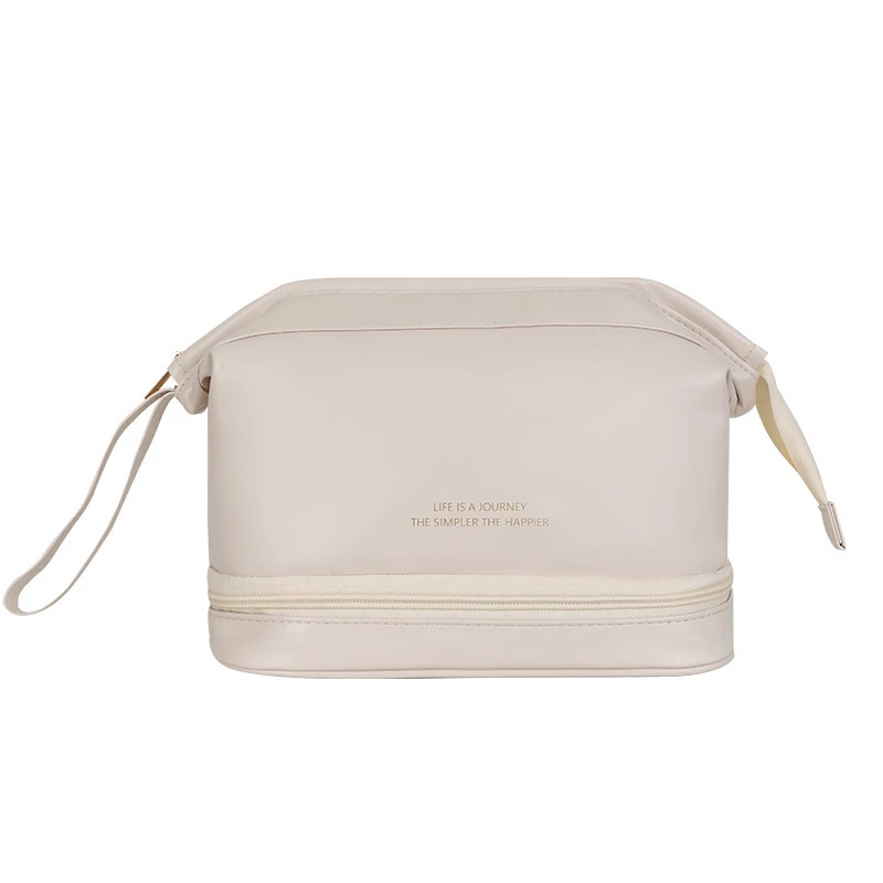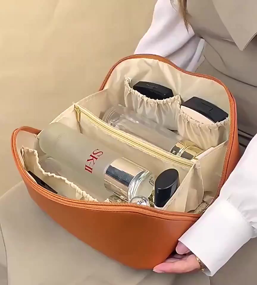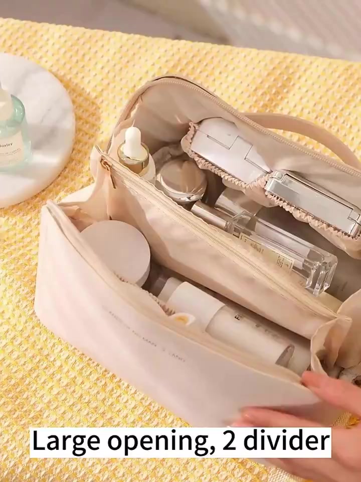 Easy and large opening design, easy to take -- Double layer cloud cosmetic bag in creamy leather that's soft and premium like a cloud. Line neatly, do not ignore every detail.