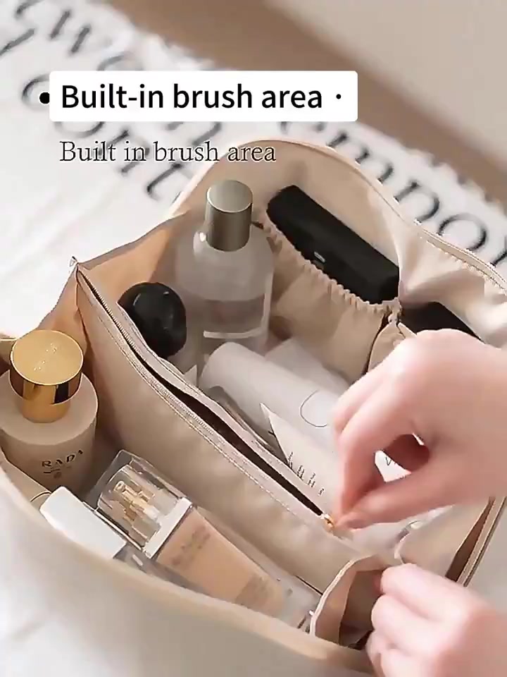Large-capacity Design Makeup Bag -- At the opening of the makeup bag has a steel wire inserted inside, which can make the bag more three-dimensional and more comfortable to fetch, it's a good travel bag.