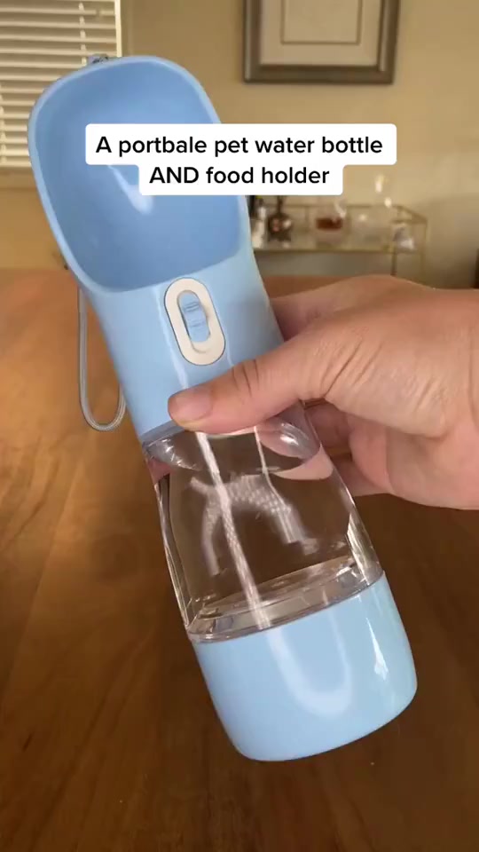 2. This dog water bottle consists of two parts, which can hold 258ml of water and 200g of food. We can provide pets with food and water anytime, anywhere