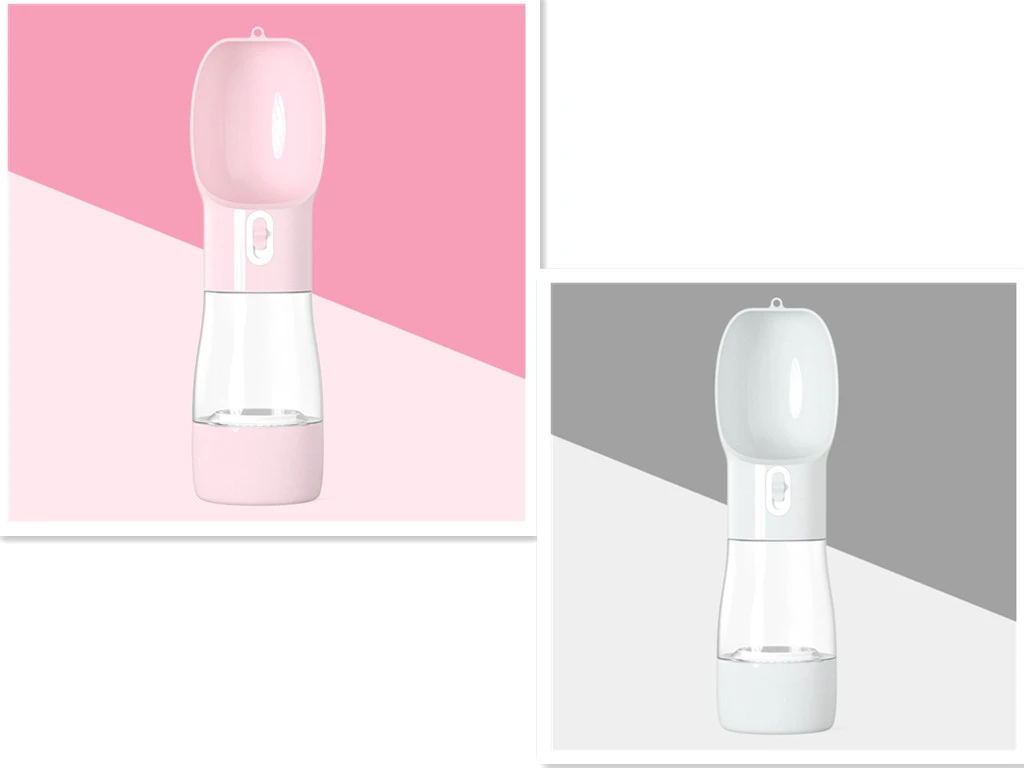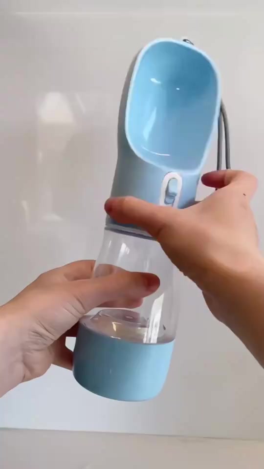 1. Portable pet water bottle with reasonable capacity, enough for outdoor walking, hiking and traveling. Wear a shoulder strap and hold it in your hand easily